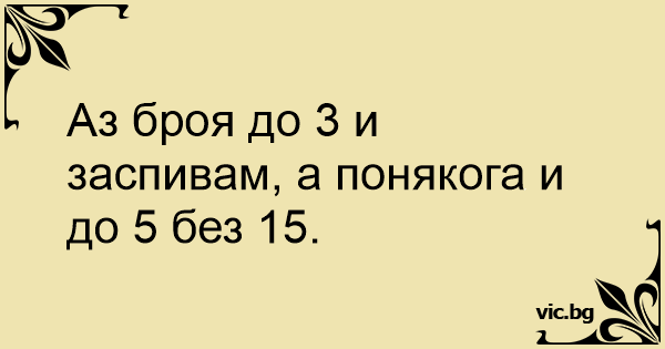 Аз броя до 3 и заспивам, а понякога и до 5 без 15.