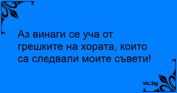Аз винаги се уча от грешките на хората, които са следвали моите съвети!