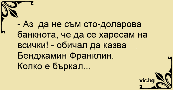 - Аз да не съм сто-доларова банкнота, че да се харесам на всички! - обичал да казва Бенджамин Франклин.