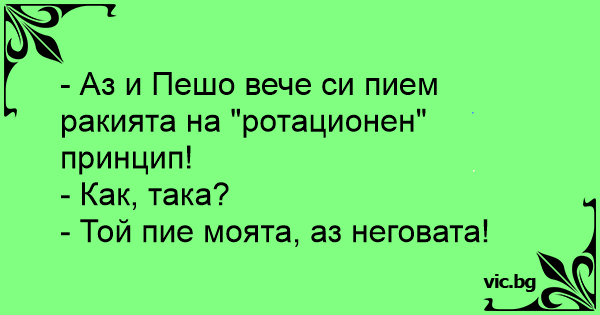 - Аз и Пешо вече си пием ракията на "ротационен" принцип!