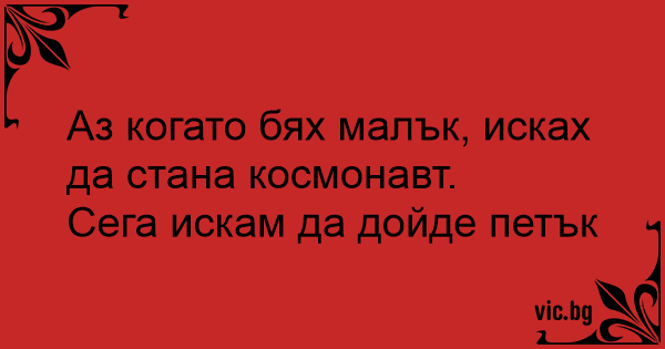 Аз когато бях малък, исках да стана космонавт.<br />Сега искам да дойде петък