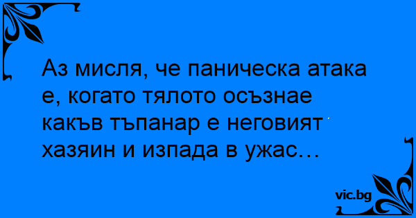 Аз мисля, че паническа атака е, когато тялото осъзнае какъв тъпанар е неговият хазяин и изпада в ужас…