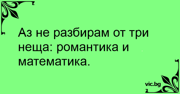 Аз не разбирам от три неща: романтика и математика.