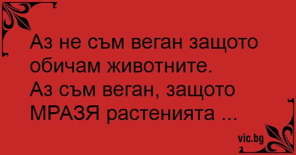 Аз съм beгaн, защото МРАЗЯ растенията ...