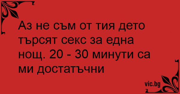 Аз не съм от тия дето търсят cekc за една нощ. 20 - 30 минути са ми достатъчни