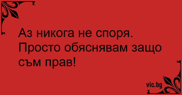 Аз никога не споря. Просто обяснявам защо съм прав!
