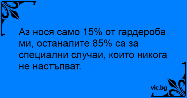 Аз нося само 15% от гардероба ми, останалите 85% са за специални случаи, които никога не настъпват.