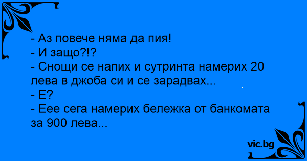 • Вицове от Facebook от нашата страница https://www.facebook.com/www.vic.bg