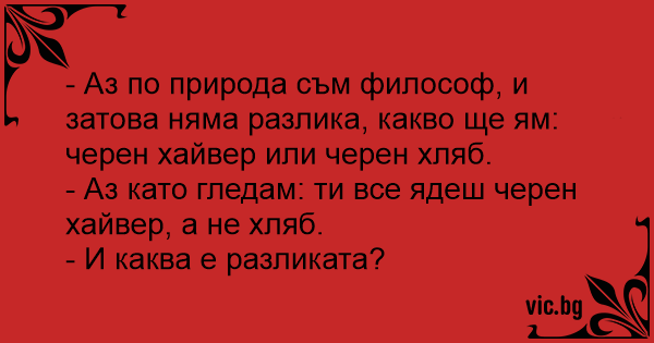- Аз по природа съм философ, и затова няма разлика, какво ще ям: черен хайвер или черен хляб.