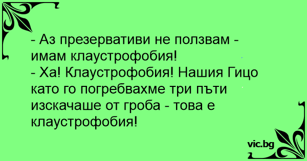 - Аз презервативи не ползвам - имам клаустрофобия!
