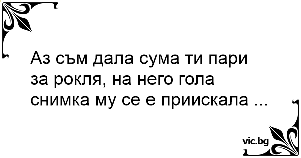 Аз съм дала сума ти пари за рокля, на него гола снимка му се е приискала ...