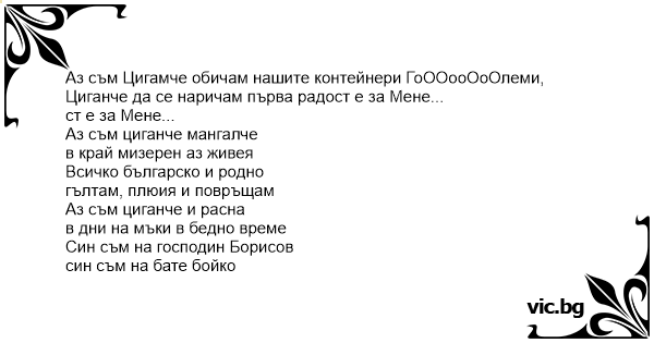 Аз съм Цигамче обичам нашите контейнери ГоООооОоОлеми, Циганче да се наричам първа радост е за Мене...