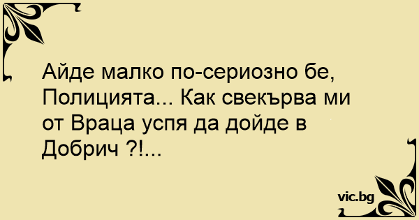 Айде малко по-сериозно бе, Полицията... Как свекърва ми от Враца успя да дойде в Добрич ?!...