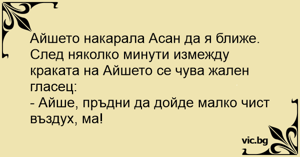 - Айше, пръдни да дойде малко чист въздух, ма!