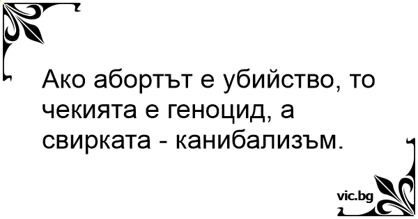 Ако абортът е убийство, то чекията е геноцид, а свирката - канибализъм.