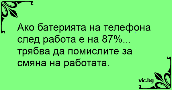 Ако батерията на телефона след работа е на 87%... трябва да помислите за смяна на работата.