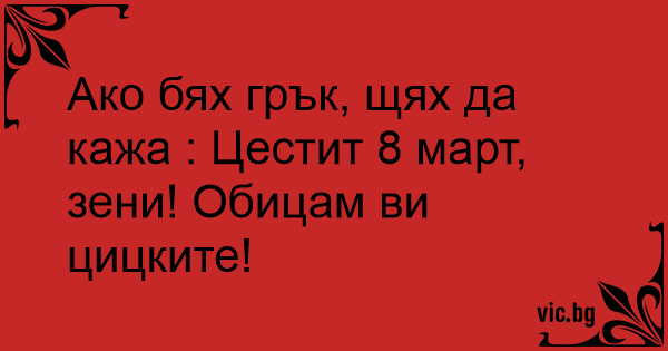 Ако бях грък, щях да кажа : Цестит 8 март, зени! Обицам ви цицките!