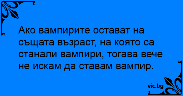 Ако вампирите остават на същата възраст, на която са станали вампири, тогава вече не искам да ставам вампир.