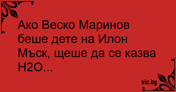 Ако Веско Маринов беше дете на Илон Мъск, щеше да се казва H2O...
