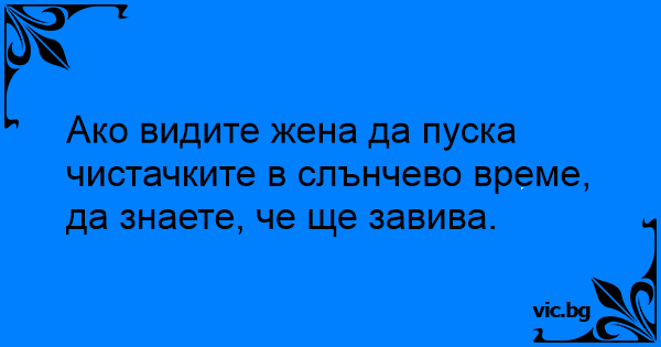 Ако видите жена да пуска чистачките в слънчево време, да знаете, че ще завива.