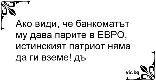 Ако види, че банкоматът му дава парите в ЕВРО, истинският патриот няма да ги вземе! дъ