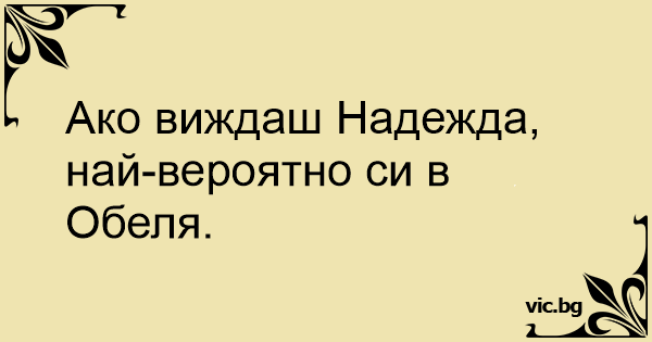 Ако виждаш Надежда, най-вероятно си в Обеля.