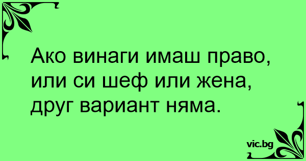 Ако винаги имаш право, или си шеф или жена, друг вариант няма.