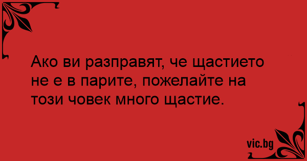 Ако ви разправят, че щастието не е в парите, пожелайте на този човек много щастие.