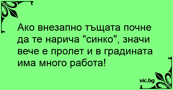 Ако внезапно тъщата почне да те нарича "синко", значи вече е пролет и в градината има много работа!