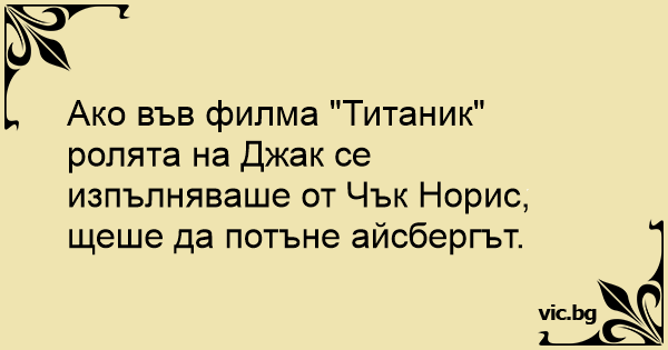 Ако във филма "Титаник" ролята на Джак се изпълняваше от Чък Норис, щеше да потъне айсбергът.