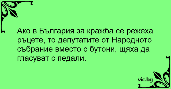 Ако в България за кражба се режеха ръцете, то депутатите от Народното събрание вместо с бутони, щяха да гласуват с педали.