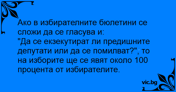 "Да се екзекутират ли предишните депутати или да се помилват?", то на изборите ще се явят около 100 процента от избирателите.