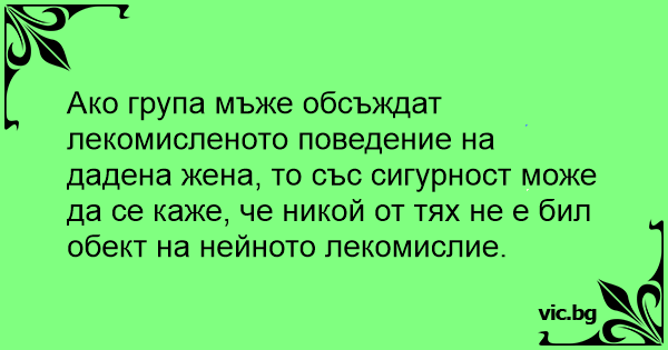 Ако група мъже обсъждат лекомисленото поведение на дадена жена, то със сигурност може да се каже, че никой от тях не е бил обект на нейното лекомислие.