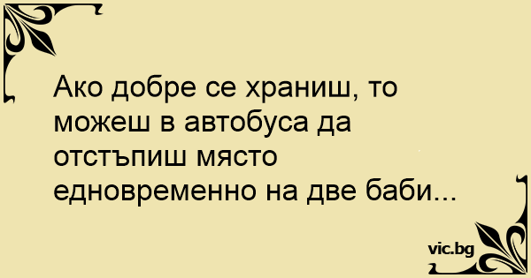 Ако добре се храниш, то можеш в автобуса да отстъпиш място едновременно на две баби...