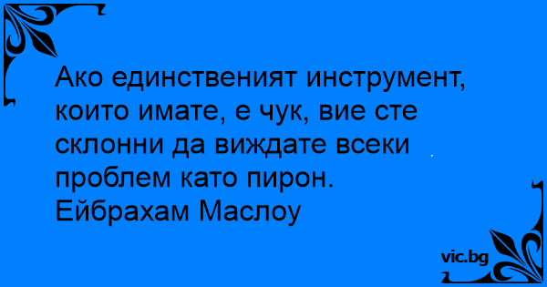 Ако единственият инструмент, които имате, е чук, вие сте склонни да виждате всеки проблем като пирон.