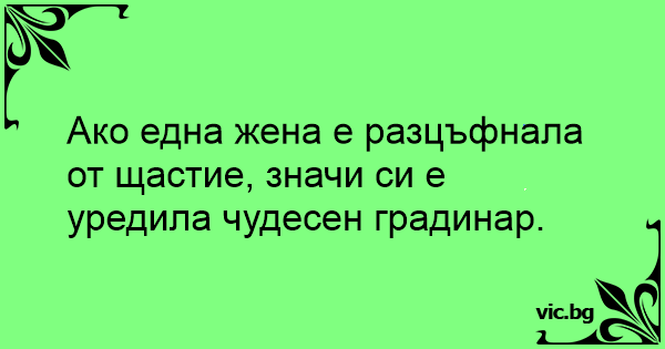 Ако една жена е разцъфнала от щастие, значи си е уредила чудесен градинар.