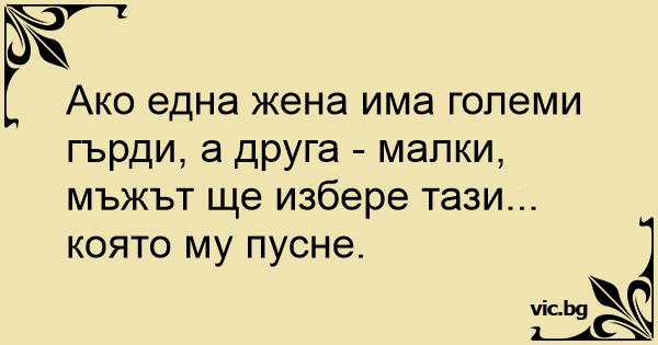 Ако една жена има големи гърди, а друга - малки, мъжът ще избере тази... която му пусне.