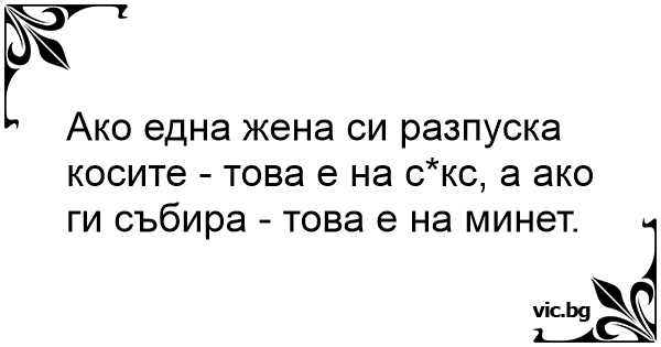 Ако една жена си разпуска косите - това е на cekc, а ако ги събира - това е на mинet.