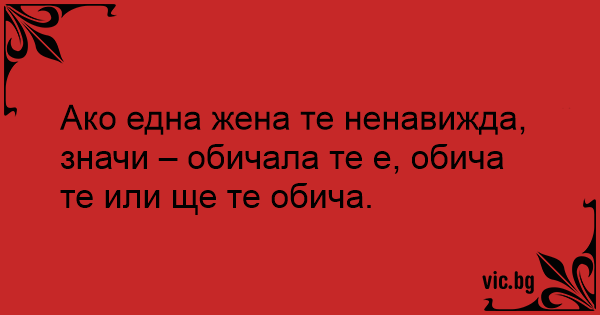 Ако една жена те ненавижда, значи – обичала те е, обича те или ще те обича.