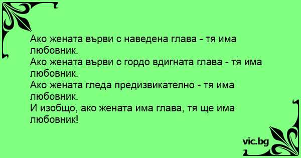 И изобщо, ако жената има глава, тя ще има любовник!