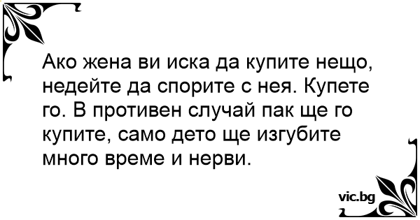 Ако жена ви иска да купите нещо, недейте да спорите с нея. Купете го. В противен случай пак ще го купите, само дето ще изгубите много време и нерви.