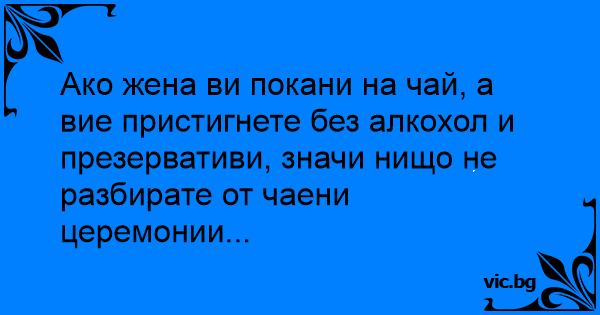 Ако жена ви покани на чай, а вие пристигнете без алкохол и презервативи, значи нищо не разбирате от чаени церемонии...