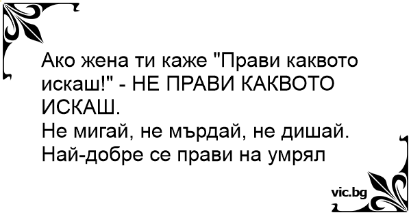 Ако жена ти каже "Прави каквото искаш!" - НЕ ПРАВИ КАКВОТО ИСКАШ.