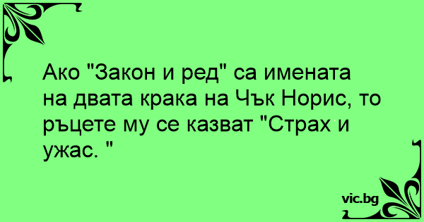 Ако "Закон и ред" са имената на двата крака на Чък Норис, то ръцете му се казват "Страх и ужас. "