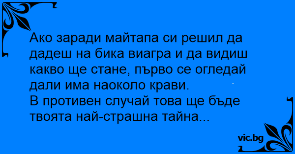Ако заради майтапа си решил да дадеш на бика bиaгpa и да видиш какво ще стане, първо се огледай дали има наоколо крави.