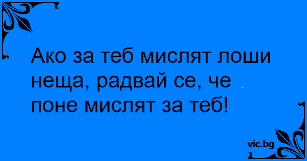 Ако за теб мислят лоши неща, радвай се, че поне мислят за теб!