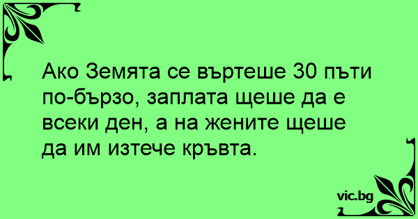 Ако Земята се въртеше 30 пъти по-бързо, заплата щеше да е всеки ден, а на жените щеше да им изтече кръвта.