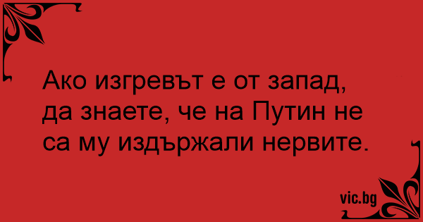 Ако изгревът е от запад, да знаете, че на Путин не са му издържали нервите.
