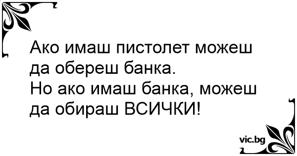 Ако имаш пистолет можеш да обереш банка.