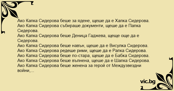 Ако Капка Сидерова редеше рими, щеше да е Рапка Сидерова.